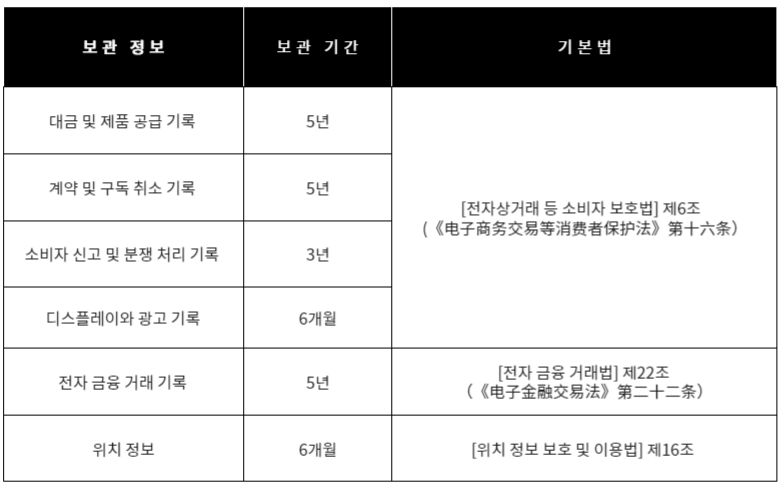 ⑻ 법률에 따라 수집/이용되는 개인 정보의 보관 기간 및 근거